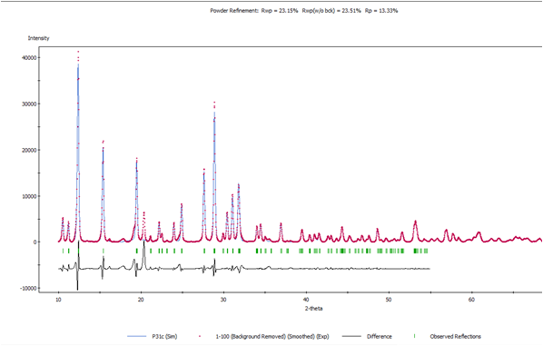 各位虫友,我最近合成了一种Fe-O-P的化合物,做完XRD发现和Fe3H9(PO4)6的衍射峰蛮像的,但是这个卡片没有晶胞参数等任何信息,于是我用Reflex进行指标化,指标化的结果如下,Rwp=23.15%,Rp=13.35%,这两个值可以接受吗?如果不行,到什么程度可以接受呢?我还想咨询下,接下来怎样通过Reflex算出原子坐标进而画出晶体结构呢?跪求大家指点指点,万分感谢![]() 图片1.png |