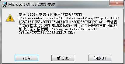 我是win 7的系统,在安装office 2003时出现这样的问题,看附件图,请高手指点该怎么办?