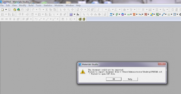 导出的cif文件最好不要放到桌面上,他的存放路径中不能出现中文,这样他有些版本不会识别,所以你把文件存放到C盘或者F盘什么的试试吧,还有你的MS版本貌似太低了,可以升级到6.1 了都
