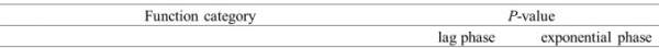 Fig. 2, correct labels: Functional category (needs 2x to be corrected); Lag phase (2x to be corrected); Exponential phase (2x to be corrected)