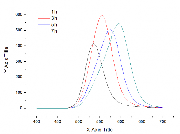 上周煮了一锅CdTe量子点,取了1,3,5,7小时的样品,准备做后续实验。 今天去做了一下荧光表征,结果如图。1小时,5小时,7小时的都还不错,但是3小时的那个峰强度好诡异啊,请问一下各位大神,这个峰强度突然增强,怎么解释这个现象啊? 万分感谢!!! 截图.png |