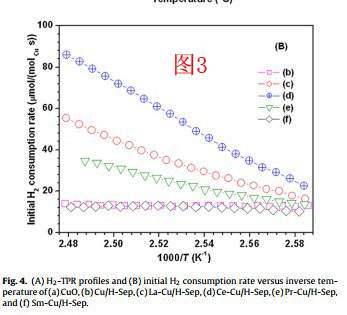 图二是不同温度下消耗的氢气量,温度变化是通过程序升温实现的,也就是说温度对应的氢气消耗量,通过对图二数据进行微分,改变横坐标应该就能够得到图三。
