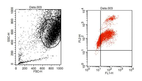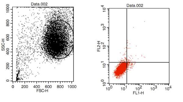 我做的流式双染,情况很诡异,想让大家看看可能是什么原因导致的这种结果,图1是阴性对照细胞,图2是药物处理的细胞。试剂盒是cusabio的,以前师姐买的没开封过但是快过保质期了,双染之后在荧光显微镜下观察基本没看见绿色荧光。现在想请教下大家看看是不是试剂有问题,还是药物本身就没有促进细胞凋亡的作用。 1.jpg 2.jpg |