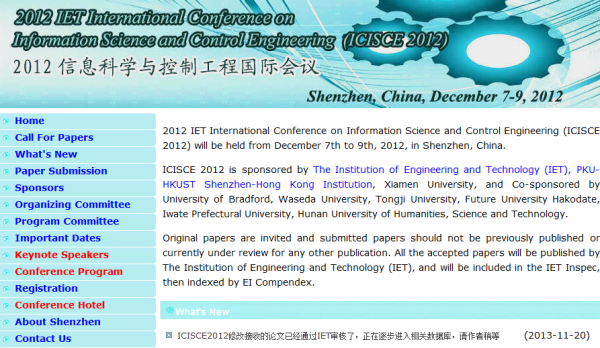 ICISCE 2012 最新消息