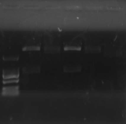今天刚做完的酶切 10μL体系:buffer 2μL、酶各0.5μL、质粒2μL、水5μL。 我切了5个小时。 第1、3泳道只有浅浅的带,大小正确,但是为什么会这么浅,难道是切的时间短? 还是有其他问题,求指教! 非常感谢 ![]() atpG1-3,Rab18,1,2.2013.12.18.JPG |