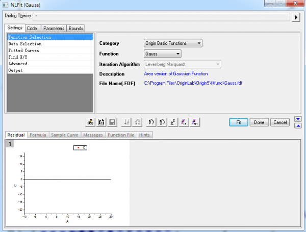 求助origin非线性拟合时总提示Fit did not converge - Parameter(s) y0,xc,A are not properly initialized. Please check and correct their values.而且还不出现拟合曲线。不经常使用oringin,求各位大神帮解答一下! gauss拟合.png |