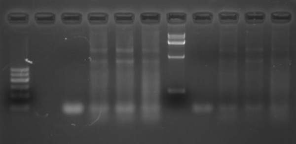 RNA提取后跑胶泳道条带弥散,有亮带,请教这是什么原因呢?