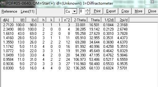 XRD的标准PDF卡片怎么得到晶面指数!!!