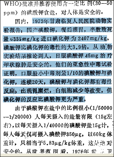 2、明明知道碘酸钾的毒性比碘化钾的毒性大,于志恒却在《为什么》里提供一个不靠谱的,相反的数据?