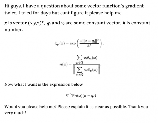 关于向量函数求导,请教各位大仙,多谢多谢! 已有1人参与