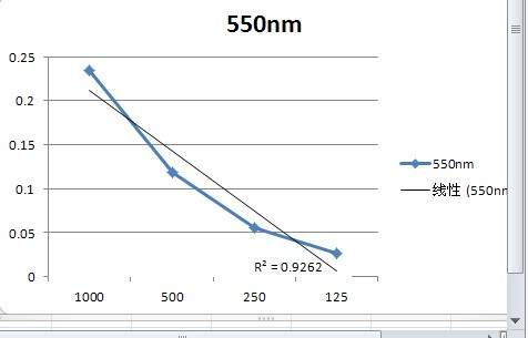 ④、绘制标准曲线并计算甘油浓度。Excel作图步骤:各标准管OD值为y轴,标准品浓度为x轴。