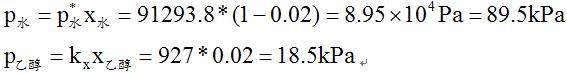 在97.11℃时,x(乙醇)=0.012时,乙醇水溶液总蒸汽压p为101325pa,该温度下纯水饱和蒸汽压为91293.8pa,当温度不变,x(乙醇)=0.02时,下列各式错误的是 A Kx=927kpa B Kx=557kpa C p(水)=89.5kpa D p(乙醇)=18.5kpa 麻烦写下过程,谢谢! [ Last edited by sddtc888 on 2013-12-23 at 17:40 ] |