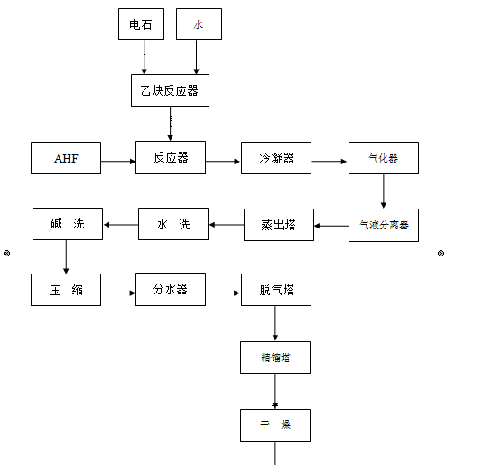 求二氟乙烷生产工艺流程中每一步的化学方程式,工艺流程图以给出) 已有1人参与
