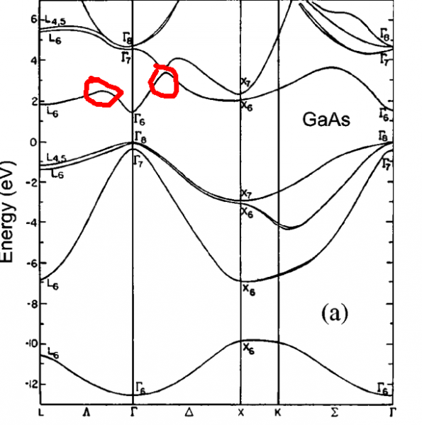 为什么用Kane的理论模型,带入响应参数却画不出如图所以的能带结构图。X方向是不是指[100],也就是kx有取值,ky=kz=0?L方向是不是[111],kx=ky=kz都有取值?请大神解惑。 Unnamed QQ Screenshot20131224175833.png |
