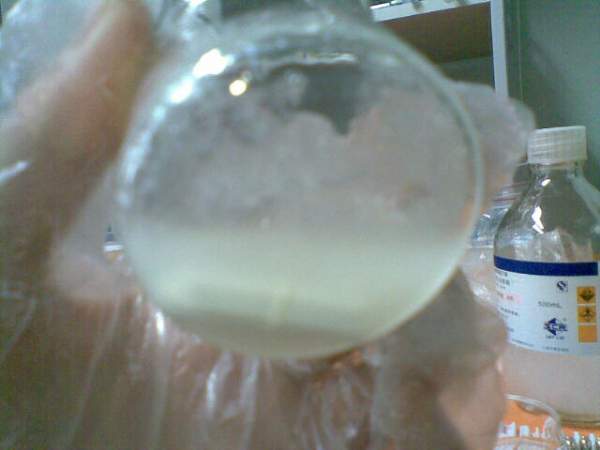 本人今天做实验 用的是90%的冰醋酸溶壳聚糖,配置4%的溶液,用来电纺,因文献中说加入盐可以增加溶液的导电性,所以加入了NACL溶液,但是一加入,本来澄清的溶液就变浑了。。最后也无法电纺。氯化钠溶液是自己随意配的,很少。 壳聚糖溶液 加入氯化钠溶液之后 加入氯化钠溶液后 |
