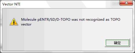 我在模拟topo克隆时,Invitrogen的pENTR™/SD/D-TOPO®载体竟然不被识别为topo克隆载体而无法进行下去。请Vector NTI高手指点。多谢!