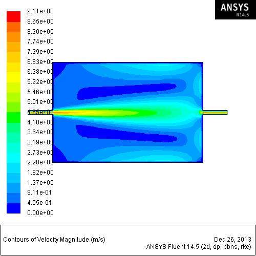 本人最近想模拟个循环流动的流场情况,出口速度和进口速度都已定,然后模拟中间箱体的流场,刚开始设定了进口出口流速速度均为8.49m/s,但是都不理想,出口完全是靠压力流出来的,没有达到效果,将出口设置成很小的压力出口,结果跟设定流速的差不多的,模型和结果示意图如图,求大神相助。。。