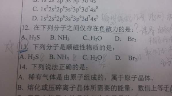请大家看一下13题,怎么判断多原子分子的磁性?谢谢!!!