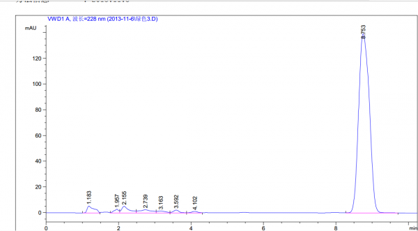 如图的两个液相色谱图,如果去做液相色谱与质谱联用,能不能确定1~2个峰的分子量,最后一个是已知的,前面几个小峰未知,希望大神帮忙判断一下,我不是做分析的,但是这几种物质(可能是副产物)对我的研究有较大影响,希望高手回答。色谱条件如下:、 高效液相色谱:安捷伦 色谱柱:C18反相柱 检测波长:228nm 进样量:15μL 流动相:甲醇:水=70:30 1.png 2.png |