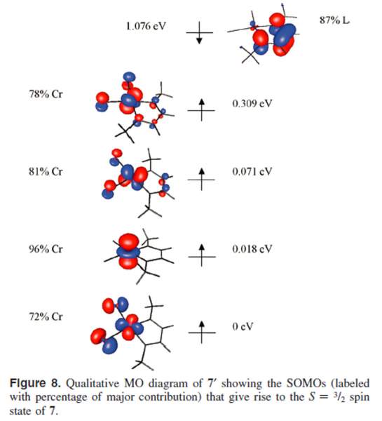 按标题的意思,是特意把所有的SOMO挑出来了,并且把能量最低的那个定为0eV,便于比较其他SOMO的能量