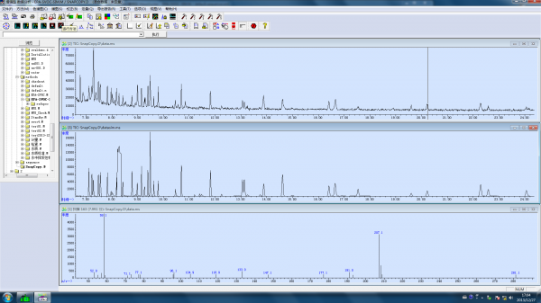 各位大牛,小弟在做SVOC时,使用了Scan和SIM模式同时进行,在附图中上面是Scan扫描的图,中间是SIM图,在8.2和8.3之间SIM图的峰像是没有分开的感觉,由于中间设计到定性离子45和43,刚开始以为是比较接近二氧化碳的原因固将定性离子改为79和70但是出现和附图一样的情况,想请教各位大牛这种情况怎么解决,是因为色谱没有分开还是什么原因?
