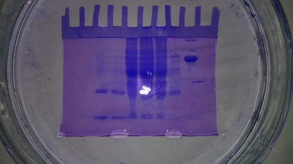 SDS-Page电泳没有条带,都是黑黑的一片,请教原因