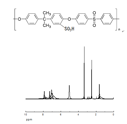 如图,1号是聚砜的分子式和氢谱谱图,2号是磺化聚砜的分子式和氢谱谱图,请懂氢谱的大虾帮忙分析一下!谢谢!