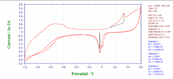 看看如何利用标准氧化还原电位表分析CV图上的反应。