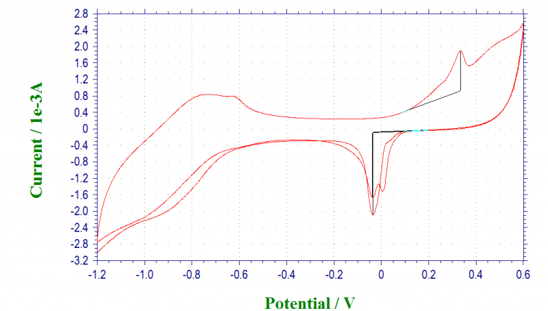 求各位大侠不吝侧教分析如下图,小弟不胜感激。体系是NaOH溶液,工作电极为氧化石墨烯银溶液沉积而成,采用三电极体系,参比为甘汞电极。看看各个峰反应是什么反应。看看如何利用标准氧化还原电位表分析CV图上的反应。在电压区间的两端,矩形会出现尖峰,这是为何?极化吗?如果是有析氢气(还原反应),那么回扫时有析氧(氧化反应),为何我的氧化反应有三个峰,不就是一个析氢(或吸氧),外加一个银的氧化。难道在电压区间的两端既有析氢又有析氧。可是一个氧化一个还原啊。不会是吸氧,因为我通过氮气除氧乐乐,这怎么理解。