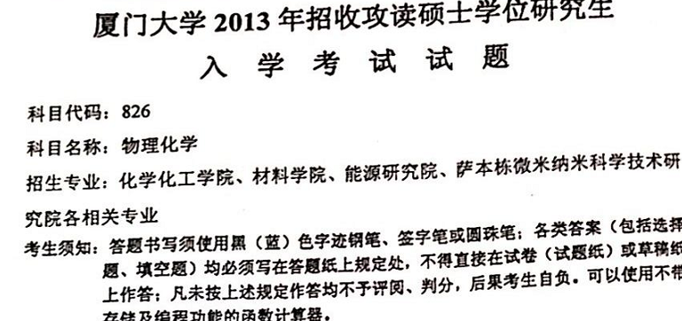 考厦门大学的小伙伴们,进来讨论一下2013年物理化学真题吧