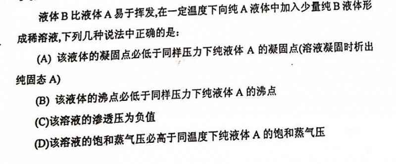 A对,D不对,根据那个拉乌尔定律P=P*(1-XB)