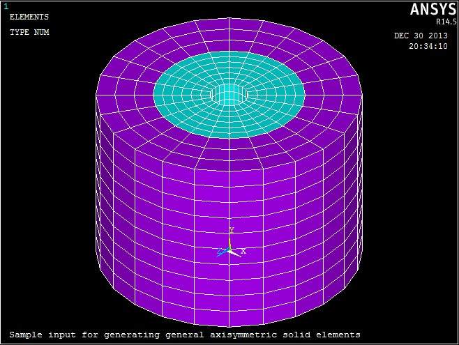/title, Sample input for generating general axisymmetric solid elements