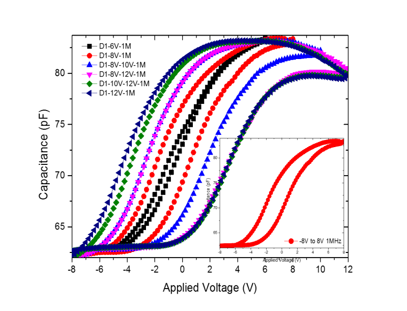 大神帮小虫看看啊,,为什么我做的MFIS器件测得的CV两段不是直线,在右侧正电压有往下掉的趋势,而左侧负压也不是直线(还有剩余小窗口)?(见图) MFIS器件:Au/BNdT/SiO2/n-Si(100) 图片1.png |