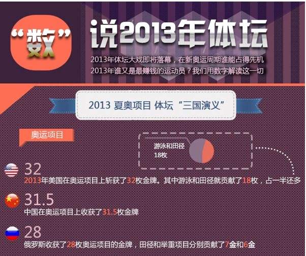 “数”说2013年体坛:中美俄三国演义 李娜吸金近亿