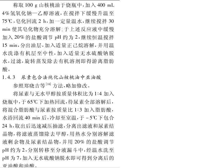 各位虫友,小弟初做油的尿素包合纯化亚油酸实验,有诸多疑惑,还请大家不吝赐教: 1.尿素包合是否需要先把油样进行脂肪酸化? 2.能否给操作路线图 |
