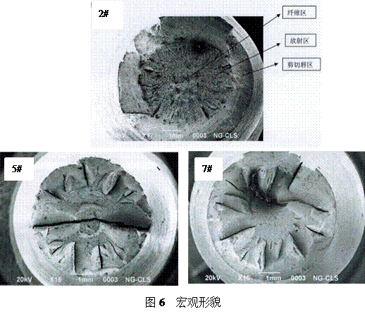 1)能看出裂纹源,从端口看出放射区,放射区共同的指向是裂纹源