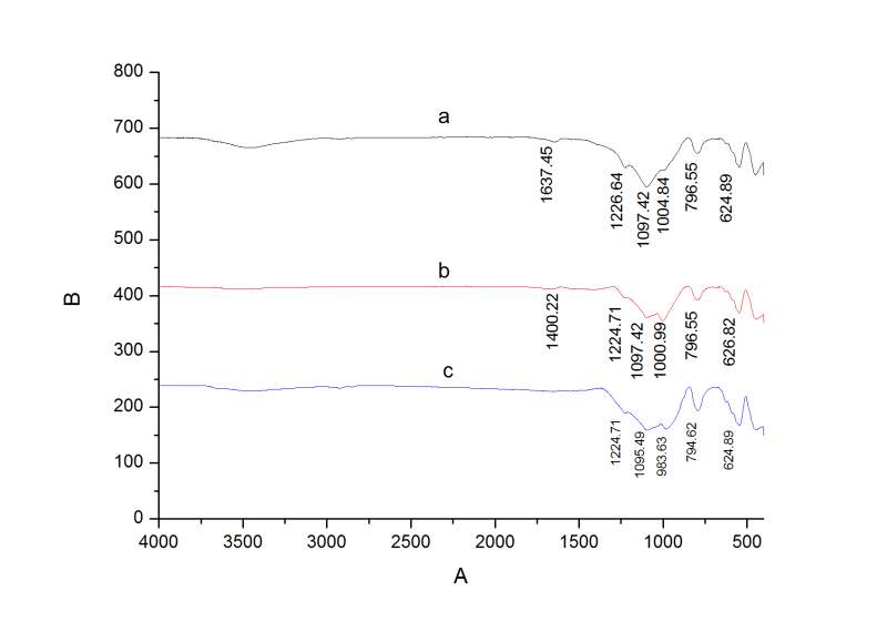最近做了一下负载Pd的ZSM-5分子筛的红外谱图,但是很多出峰位置都不太了解是什么意思。1100左右为骨架振动,800左右为Si-O-Al对称伸缩振动,550左右为五元环特征峰这几个我知道;但是其他的几个峰都不知道什么意思了,特别不清楚金属钯的出峰位置在哪里(重点),各位求指教。样品a为未负载的ZSM-5,样品b和c为负载Pd的ZSM-5分子筛。如果有相关文献就更好了,谢谢各位了。。。