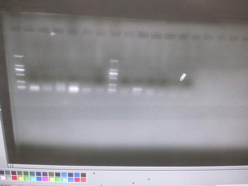 本人新手,刚刚做荧光半定量,确定内参引物(退火温度是58.4)的循环次数时,用的是混合样品(双平行),做了23 25 28的循环梯度,单独跑电泳。条带是这样的(1)。我就选择了25个循环次数,用六个不同的组织做荧光半定量(前面是目的基因,后六个是内参引物)。出现了内参基因的亮度不恒定,有弱有强(图2),又跑了几次电泳,甚至内参跑不出来(图三)。不知道为什么啊 求大侠指点迷津