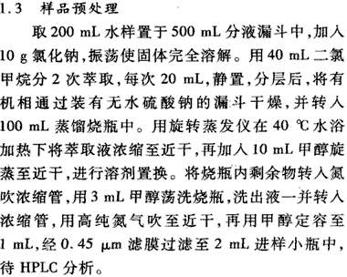 1. 水溶液加氯化钠,就是利用盐效应降低二氯甲烷有机相在水中的溶解度。加氯化钠提高了氯离子的浓度,抑制了二氯甲烷的电离。因为根据平衡反应,产物的离子浓度提高,会使平衡右移,结果就是溶解度降低。 2. 萃取多次,效果好于一次萃取。 3. 过无水硫酸钠就是为了除去有机相层的水分。 4. 旋转,氮吹就是为了浓缩待测物。 5. HPLC 检测,好像还没见过用二氯甲烷做流动相的,腐蚀管道等等弊端,溶剂置换,从二氯甲烷到甲醇,,,呵呵。 一般提取农残用二氯甲烷比较多,可能是效率高的缘故吧,,这个不好说,需要不同基质,不同溶剂验证啊,,,这个应该是现成的方法吧 |