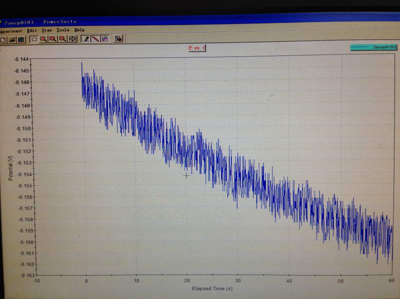 测试的时候先测开路电压,但是曲线是很波动的,如图1,每次测试都这样,只有一次偶然情况下开路电压是稳定的。