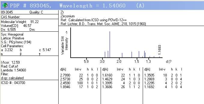 求HCP纯锆(Zr)的XRD卡片已有1人参与