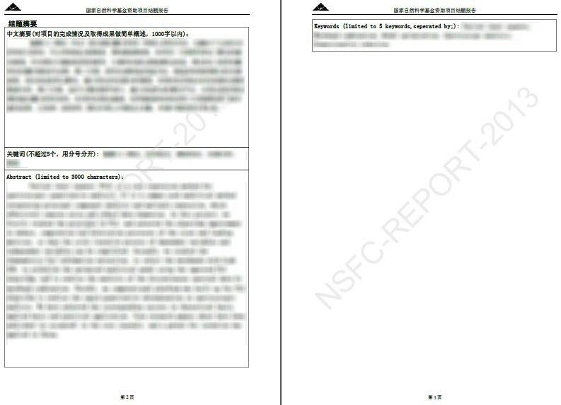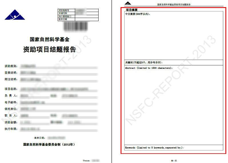 国家基金结题报告,项目摘要页空白?! 已有1人参与