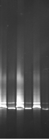 只有一次,我把CR产物纯化之后再跑胶,图片条带很清楚,但是所有泳道都一样了。都没有继续下去的动力了,不知道哪里出了问题