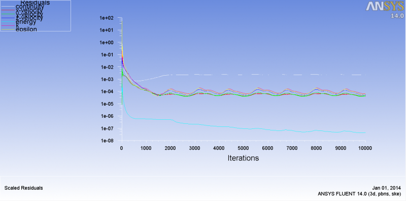 模拟了10000步 残差迭代曲线见第一幅图: 1500步的模拟结果见第二幅图: 10000步模拟结果见第三幅图: 从侧边值域可以看出,两个不同步数的计算结果有一定差距,请各位大神指导,这是有曲线波动造成的还是10000步的结果比1500步的结果更精确?还是有其他的原因?谢谢各位对此简单问题的悉心解答! 001 002 003 |