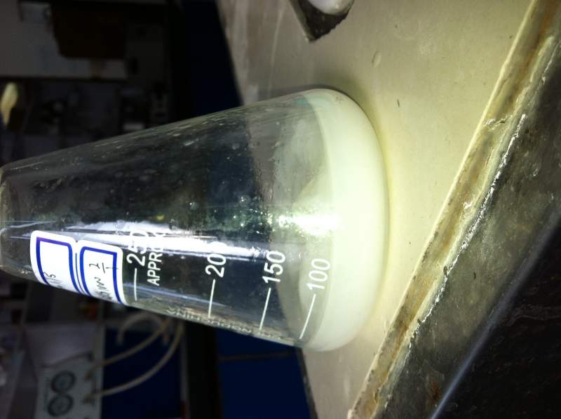 水泵抽,两个口一起抽,压力大概-0.01,我的固含量大概33%如果破乳的话,不是应该上层是水,下沉是聚氨酯??我的还是均一的就是很黏,以前做的最后没有抽气出丁酮,所有做出来的很好,半透明。