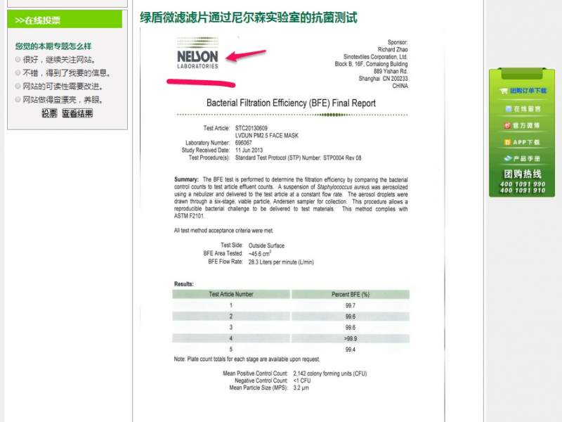 绿盾口罩号称微滤抗菌技术一小滤片可以过滤PM2.5,求解,求探讨,想知道会不会又是一噱头! 还有美国尼尔森实验室检验报告(http://www.pm25mask.com/ldzs/zs/2012-07-15/167.html) 但我看了下美国尼尔森实验室他主要检测的好像没有这类产品(http://www.nelsontesting.com/)“尼尔森测试实验室是设在绍姆堡,伊利诺伊州的独立,内部建筑材料测试实验室。原本作为罗伯特·L·尼尔森&Associates公司,我们的经验跨越四十年的混凝土材料,砌筑材料,外加剂,集料,修补砂浆,环氧,勾缝剂,密封胶,外墙涂料,防水剂,混凝土密封剂,防水材料和特种测试其他材料在建筑相关领域。“(楼主英语较差,直接用谷歌翻译了。 )请大家对于这三个问题帮忙解答下:该报告是否真实?是否可信?以及各位对”微滤抗菌技术“的看法? 检验报告图.jpg 尼尔森实验室主页.jpg |