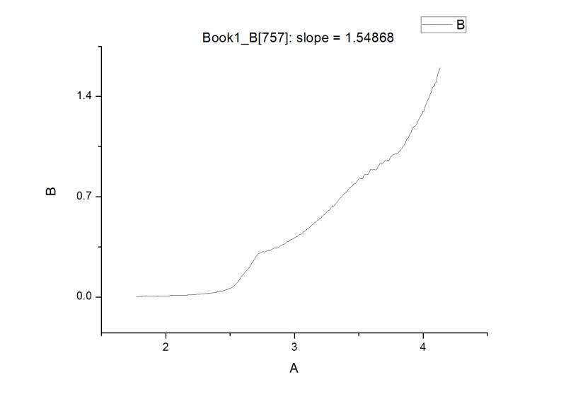 各位大虾好, 最近在算氧化亚铜的禁带宽度遇到了问题,请给位帮忙。 我看文献中介绍说以hv对(Ahv)2 作图,然后画切线就可以得到禁带宽度的值。但是我看别人得到的图都是特别平滑的曲线,也有比较明显的直线部分。但是我做的图有很大的凸起。不知道是何原因,请帮忙分析一下。而且做切线的话,我初步估算都要比2.2v大,不是说氧化亚铜的禁带宽度是2.0到2.2吗?我这个是怎么回事? 6.jpg |