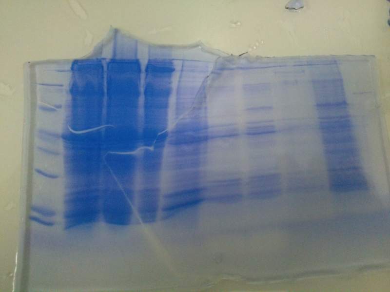 最近在跑sds-page胶的过程中发现,溴酚蓝带在后程有点变模糊的感觉。本来是细细的一条,但是跑到胶下部时,大概2/3左右,带子边缘就开始有点变糊了,像是溶开来的样子,染色结果看起来也是这样,条带有点不如上部分清晰。不知道有没有虫友也有这种经历,是不是电泳液的问题啊? DSC_1055.jpg |