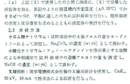 本人没有任何日语基础,再看 “水酸化ナトリウム水溶液を水やメタノール溶液中のクロム酸ナトリウムの溶解度”这篇文献时由于没有电子版的文献用不了软件翻译,以下两个地方又非常重要,希望懂日语的大侠可以帮忙翻译一下,多谢多谢! 2.jpg 3.jpg 4.jpg 5.jpg [ Last edited by MASc-girl on 2014-2-17 at 18:53 ] |