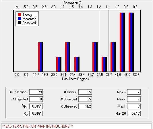 求一个粉末衍射的指标化,我用MS和PowderX都没能得到结果